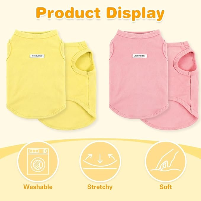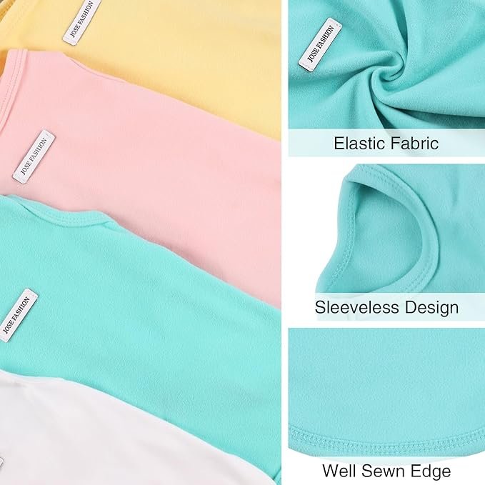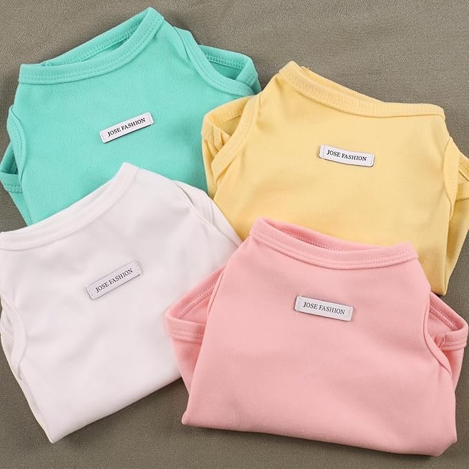 - Multipack:Treat your pet to this set of 4 sleeveless t-shirts or dog vests. With mint green, yellow, white, and pink options, it enriches your pet’s wardrobe. Create various looks for different occasions—from outdoor walks to indoor naps.